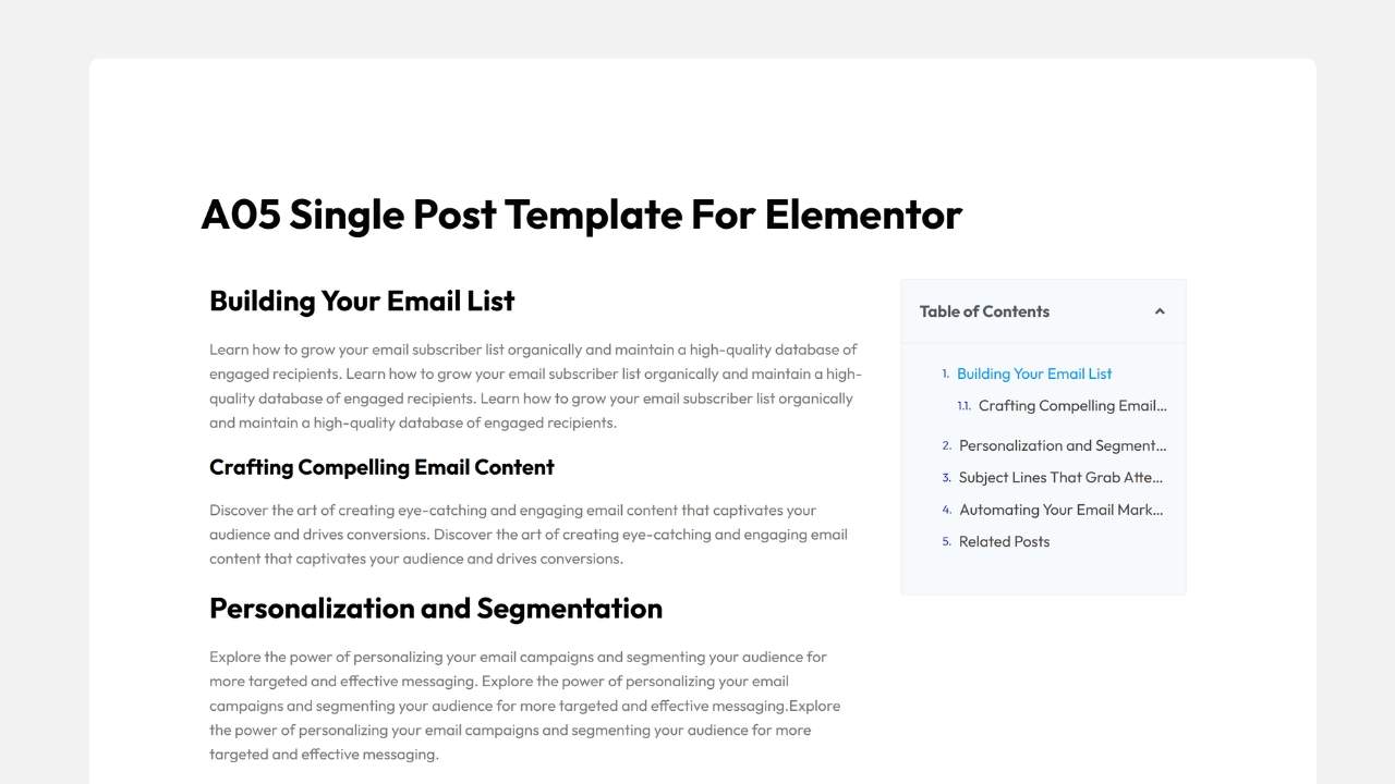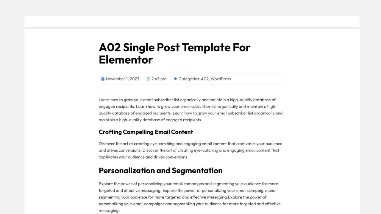 A single post template is a pre-designed layout for individual blog posts. Instead of using the default theme style, you can customize the design with Elementor.