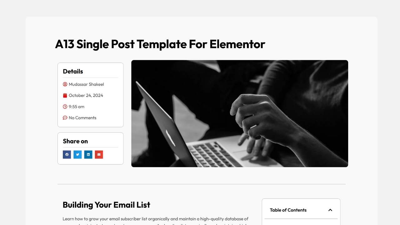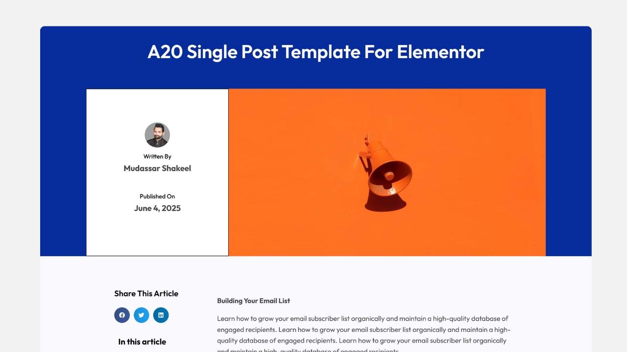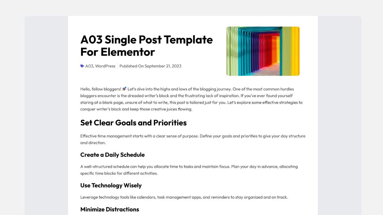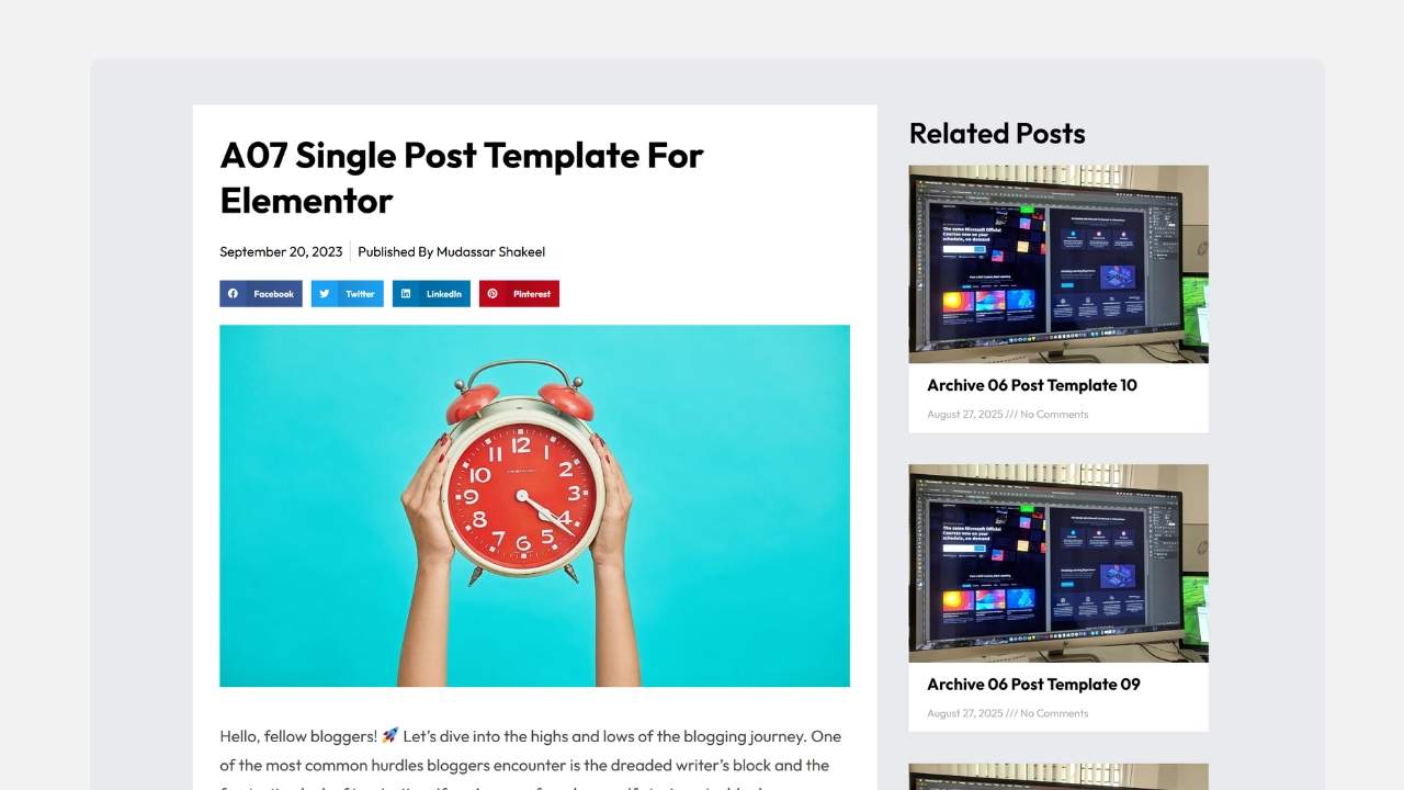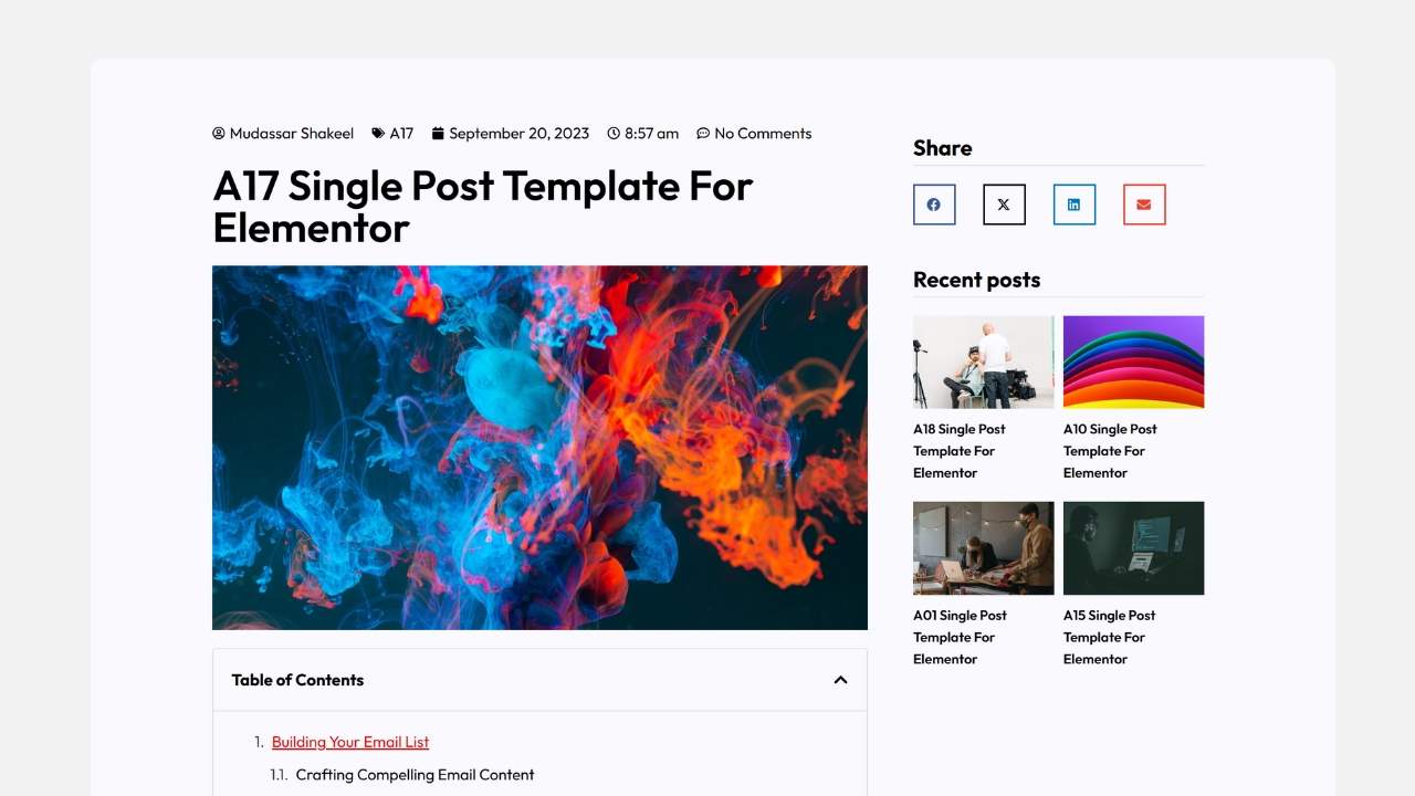 A single post template is essential for a professional blog. With Elementor single post templates, you can design beautiful post layouts, improve readability, and engage readers.