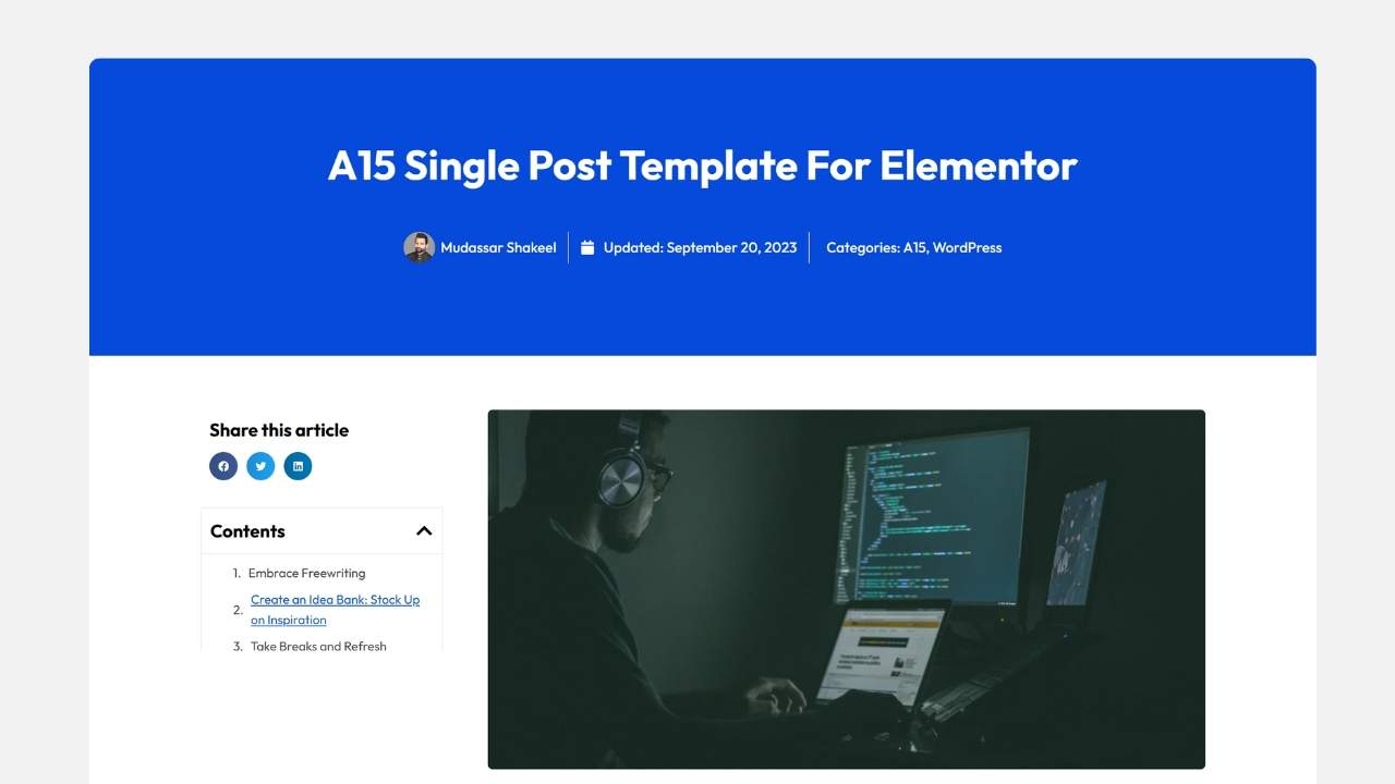 We designed a collection of Elementor single post templates to make your blog look professional.